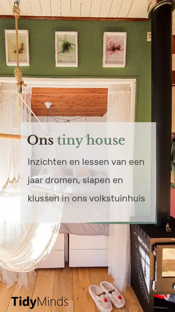 Ons tuinhuis in het groen brengt ons precies dat wat we in minimalisme zoeken. Het is hier rustig en eenvoudig. We hebben dat wat nodig is en kunnen ons dus ook focussen op wat voor ons belangrijk is. Als wij in ons tuinhuis rondkijken en dan weer aan ons ‘echte huis’ denken, weten we niet wat we daar moeten. Waar is al die ruimte voor nodig? In nog geen 20 m2 past een ruime keuken, werkplek, bedstee, badkamer en zithoek te passen. Zonder dat het krap voelt. Ons huisje voelt juist ruim en knus. Huiselijk en thuis.