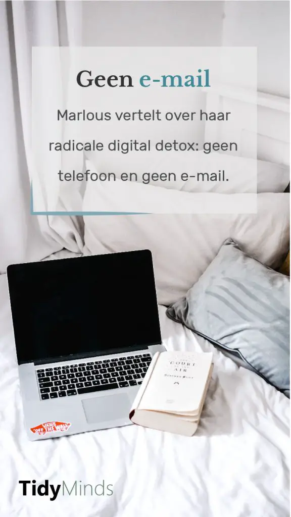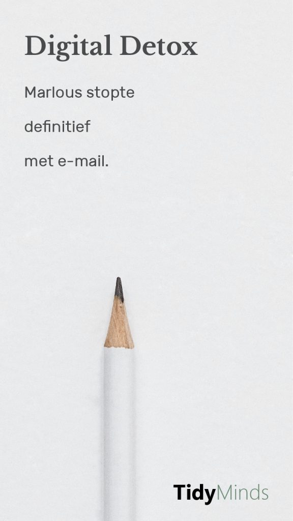 Ik werd me meer bewust van hoe mijn leven en dagen eruit zien. Waaraan besteed ik mijn tijd en is dat zinvol? Ik begon met een digital detox. Ik installeerde een app op mijn telefoon om meer inzicht te krijgen in de tijd op mijn telefoon, verwijderde mijn profiel op Facebook, stapte uit whatsappgroepen en zette al mijn pusberichten uit. Ik ging veel bewuster om met mijn telefoon; het is nu geen automatisme meer. Maar terwijl ik de schermtijd op mijn telefoon verminderde, was ik op mijn werk dagelijks uren nog steeds met mijn mail bezig. Het duurde dagelijks een paar uur om alle mailtjes weg te werken, waarna ik pas echt aan het werk kon. Dat moest anders. Ik probeerde eerst om minder gebruik van e-mail te maken, maar dat had voor mij weinig effect. Ik las toen het boek We quit mails van Kim Spinder. Haar tips waren voor mij de stimulans om als experiment voor een maand te stoppen met e-mail.