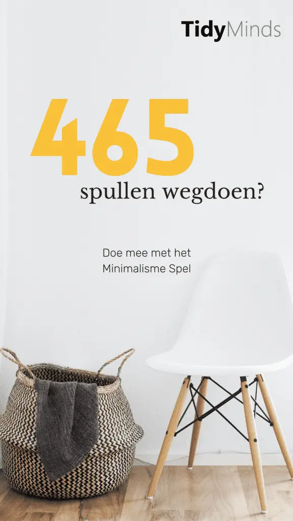 Het Minimalisme Spel wordt ook wel in het Engels de Minimalism Game (goh) en 30 Day Minimalism Challenge genoemd. Die laatste naam verklapt al een beetje hoe dit spel gaat en vooral hoe lang het duurt. Tijdens het Minimalisme Spel ga je dertig dagen aan de slag met ontspullen, waarbij de uitdaging iedere dag net wat groter wordt. Want door aan jouw opruimactie een uitdaging te koppelen, wordt het natuurlijk veel leuker.