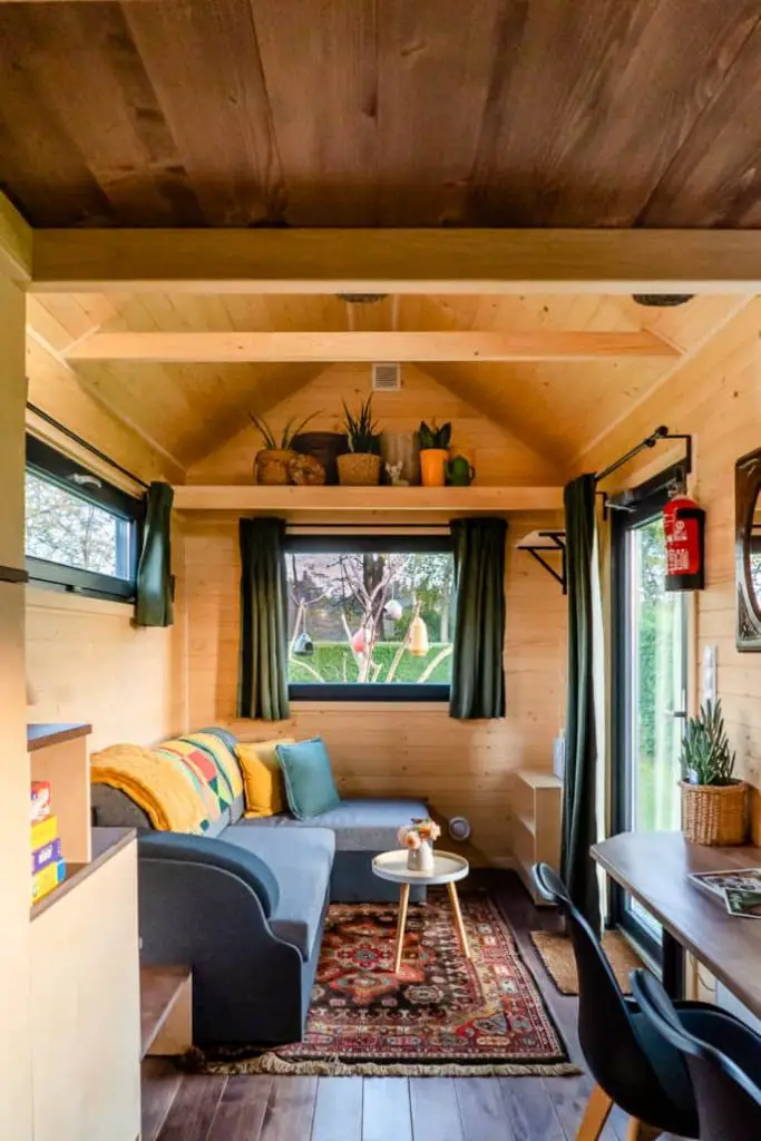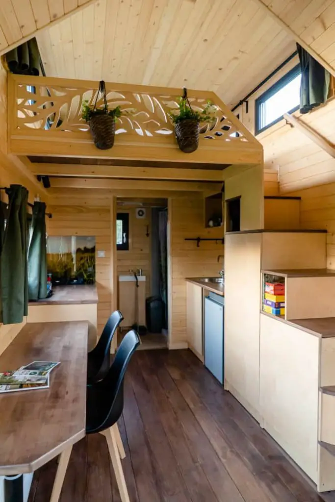 Actuele prijzen en beschikbaarheid | Tot slot vonden we nog dit mooie huisje op wielen via Booking.com. Anders dan alle andere huisjes kan je hier met vier personen slapen! Er is zowel een slaapvide met een tweepersoonsbed als een met twee losse bedden. Het is leuk om in de reviews terug te lezen hoe de gasten zich erover verbazen hoe in zo’n klein huisje alles past voor een gezin van vier en hoe ze zich hier zelf eigenlijk wel zien wonen.